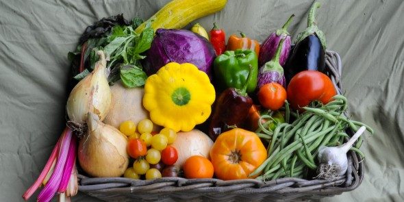 What’s in the Box: Cantaloupe, green filet beans, heirloom slicing tomato (variety), rainbow cherry tomatoes(orange,red,yellow,white, black), cabbage(red), garlic, summer squash, sweet yellow onion, eggplant, sweet pepper, hot wax pepper, basil, and swiss chard.