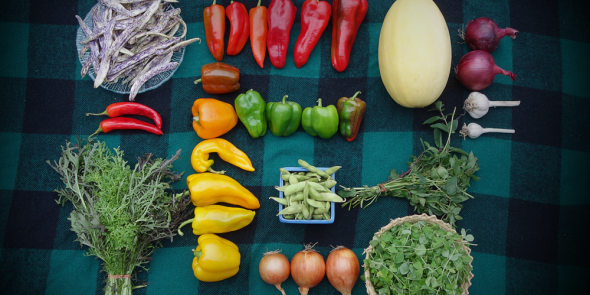 What’s in the Box: Pea shoots, sweet peppers, spaghetti squash, yellow storage onion, red storage onion, dragons tongue romano beans, porcelain garlic, green pepper, quajillo chili peppers, chocolate mint, and edamame.