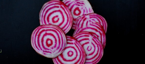 Recipe Types: Salad, Side Dish Ingredients 6 medium beets (any kind) ½ red onion, sliced 3 cloves of garlic and/or some garlic scapes if you still have some 1 bunch of swiss chard 1 cup cooked garbanzo beans 1.5 tablespoons of quality olive oil goat cheese Instructions Roast the beets: Wrap beets in foil two and two…